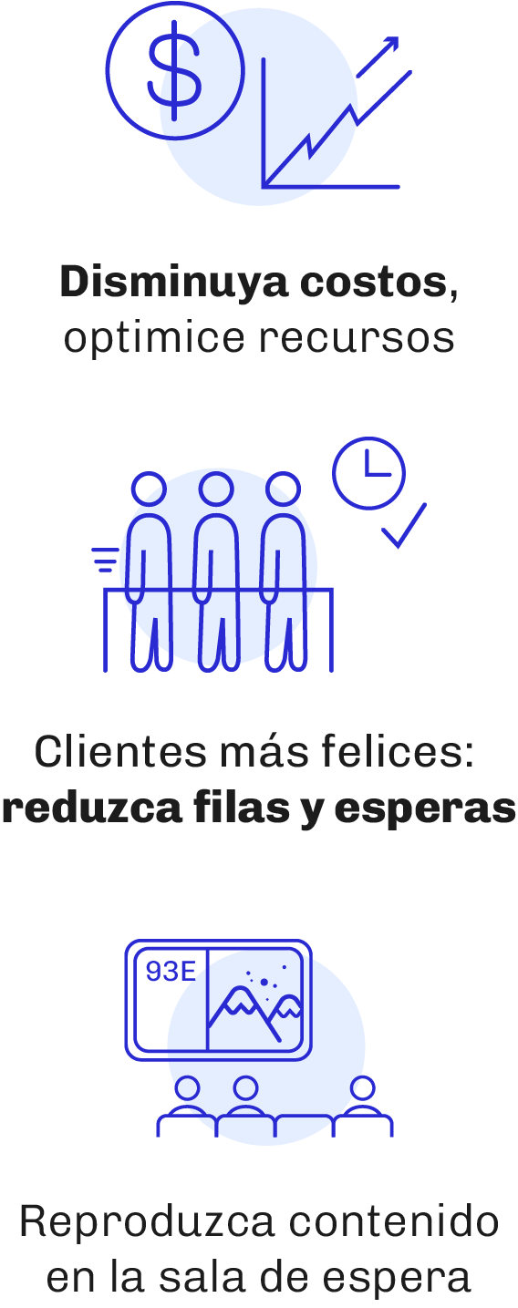 - Permite a los clientes seguir turnos en pantalla mientras muestra contenido relevante
